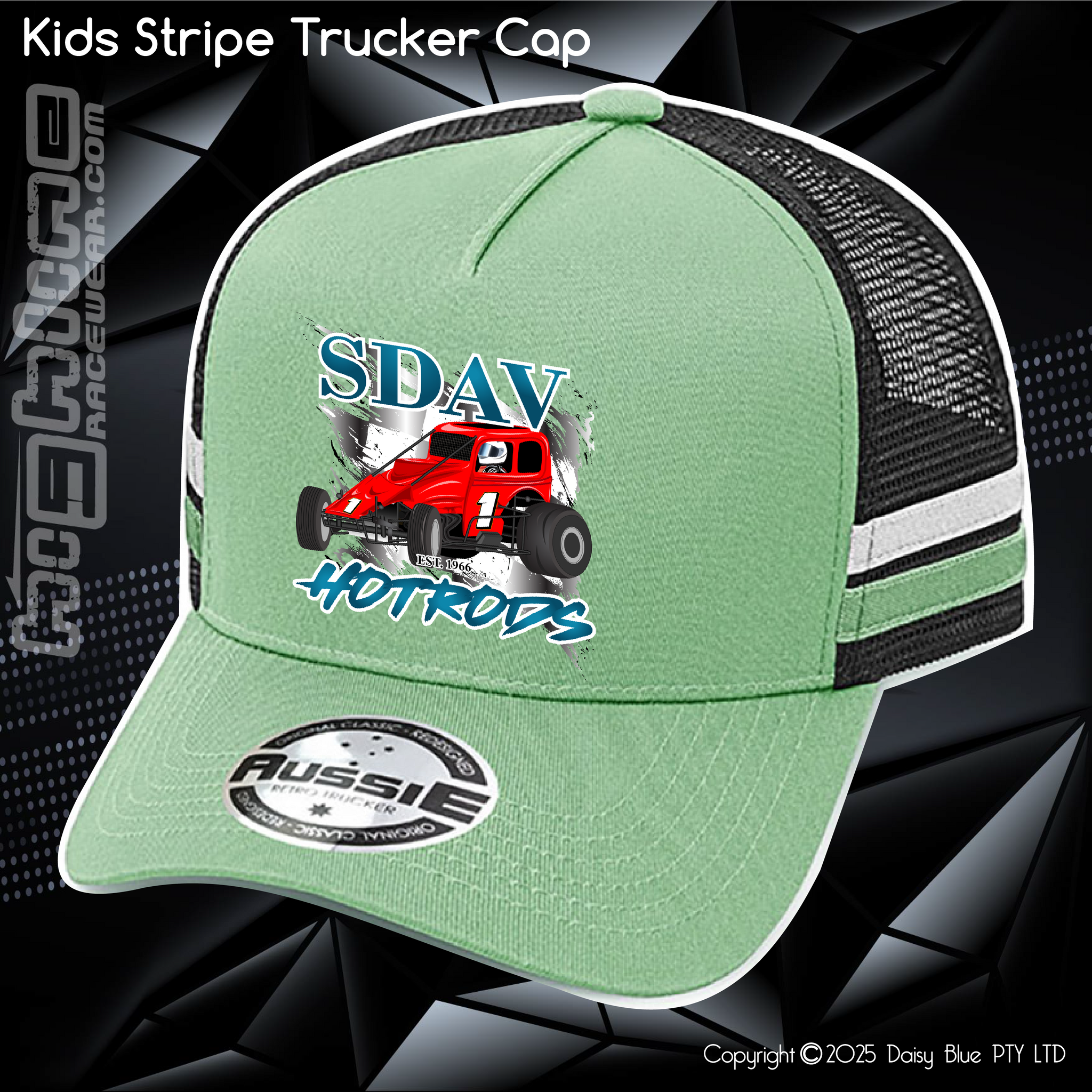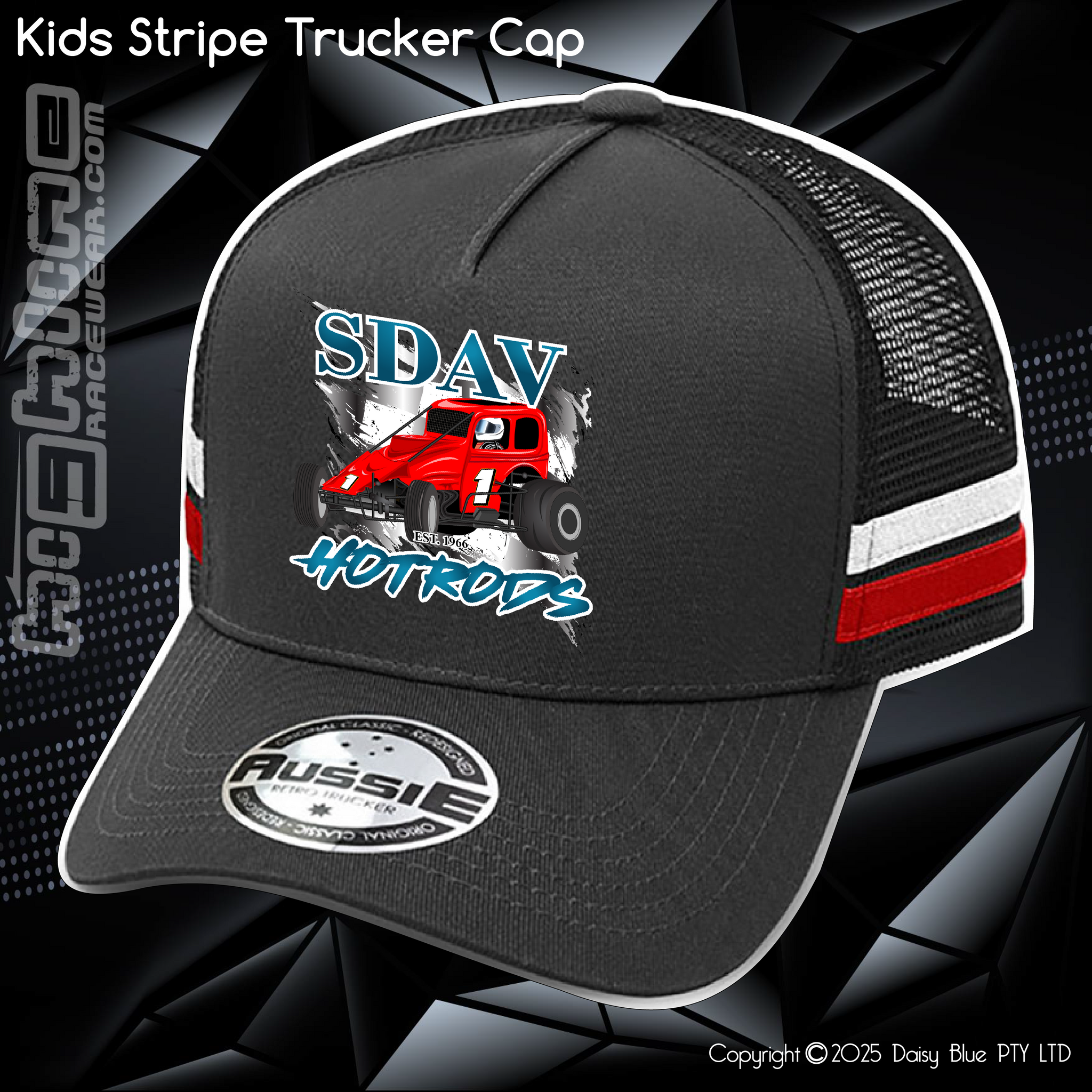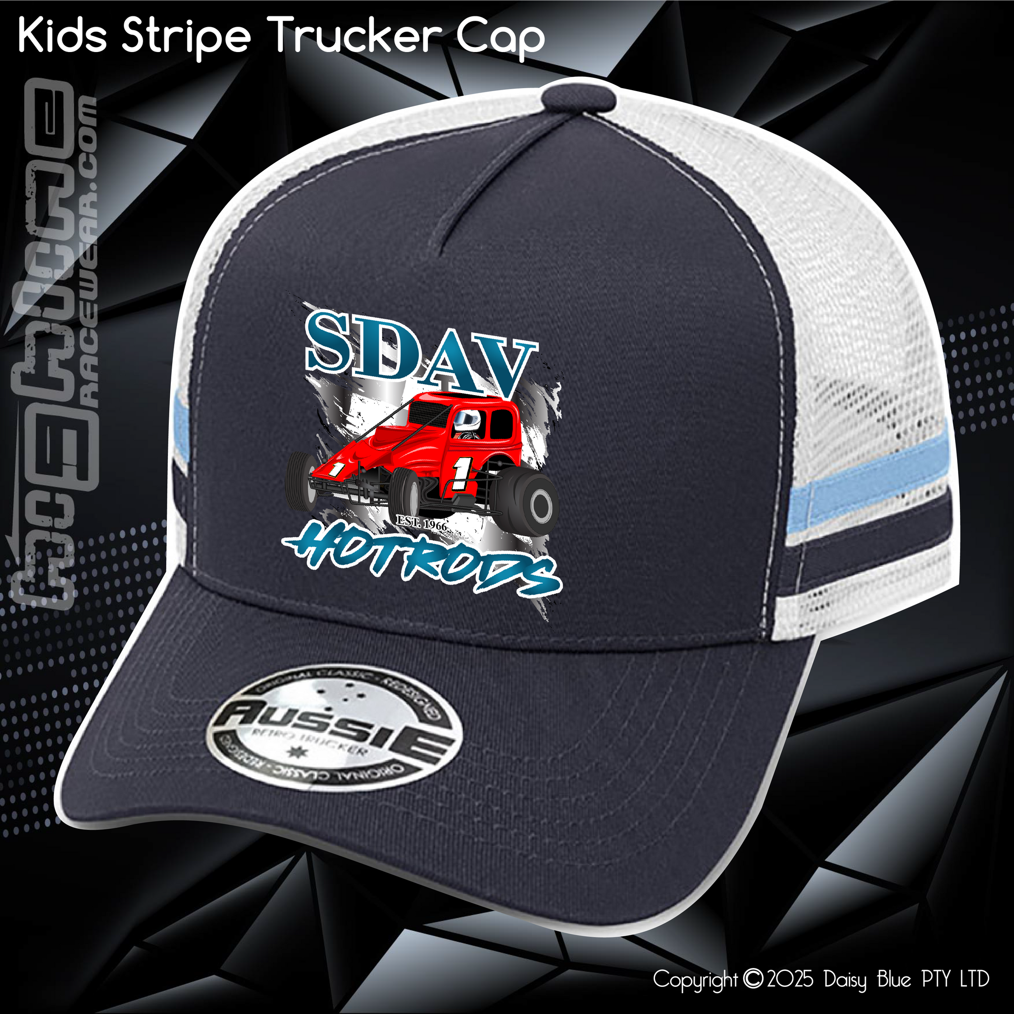 100% cotton front & peak, 100% recycled polyester mesh back