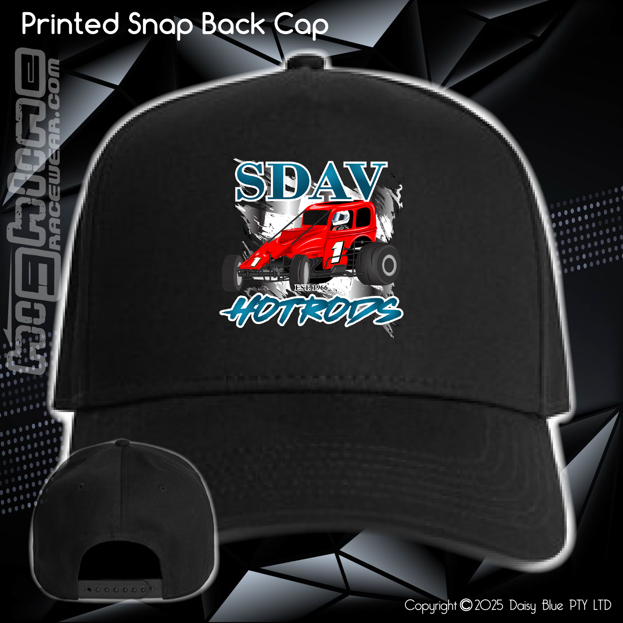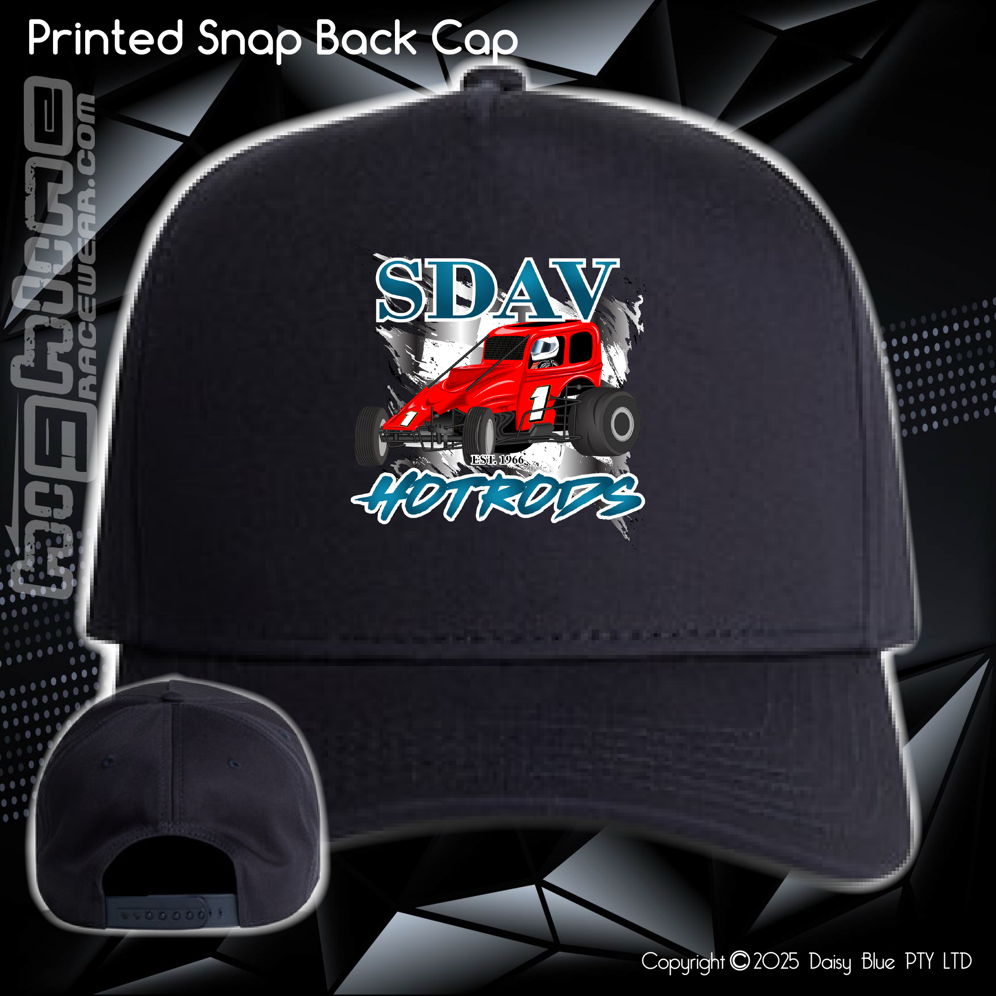 Construction:High profile - snapback cap, curved peak