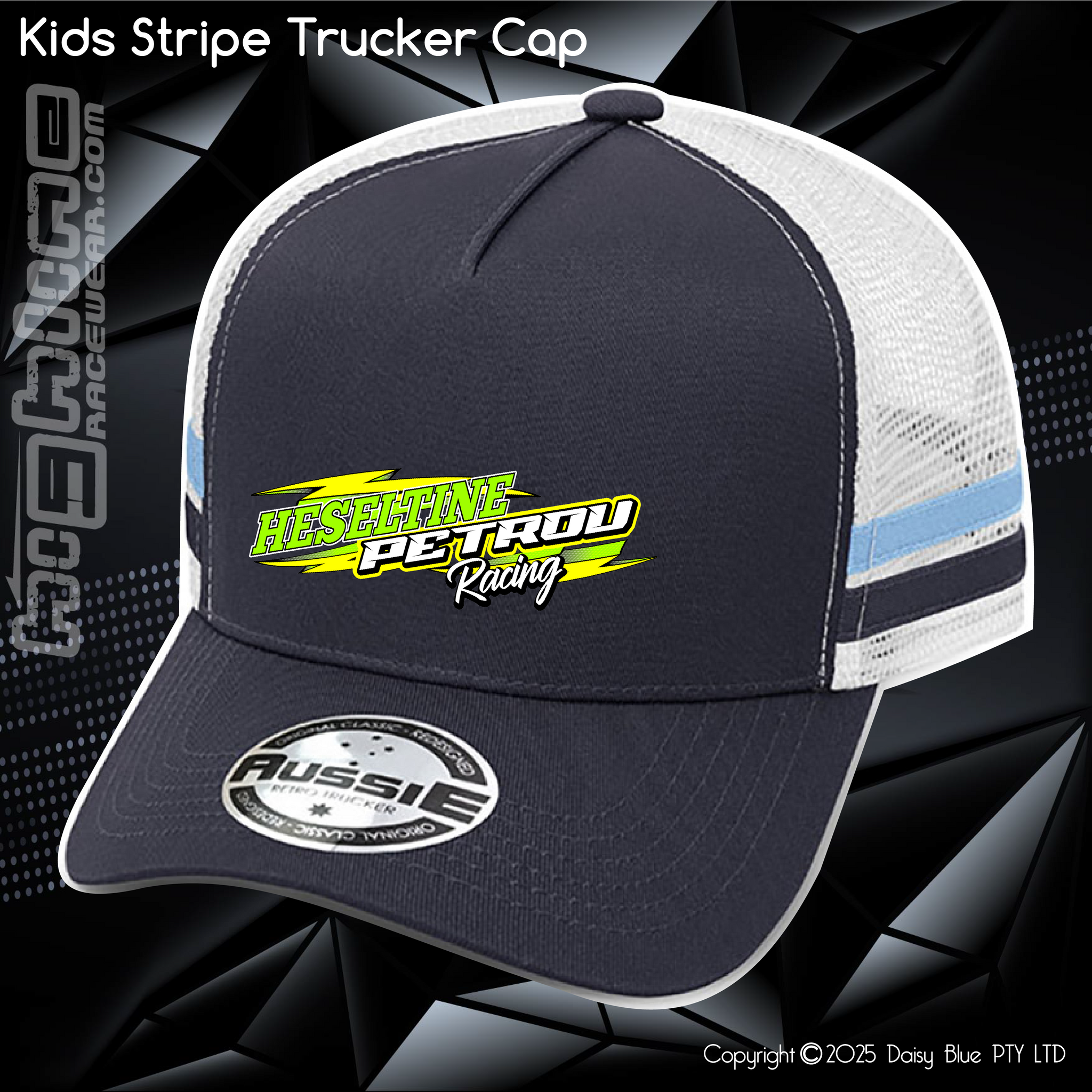 100% cotton front & peak, 100% recycled polyester mesh back