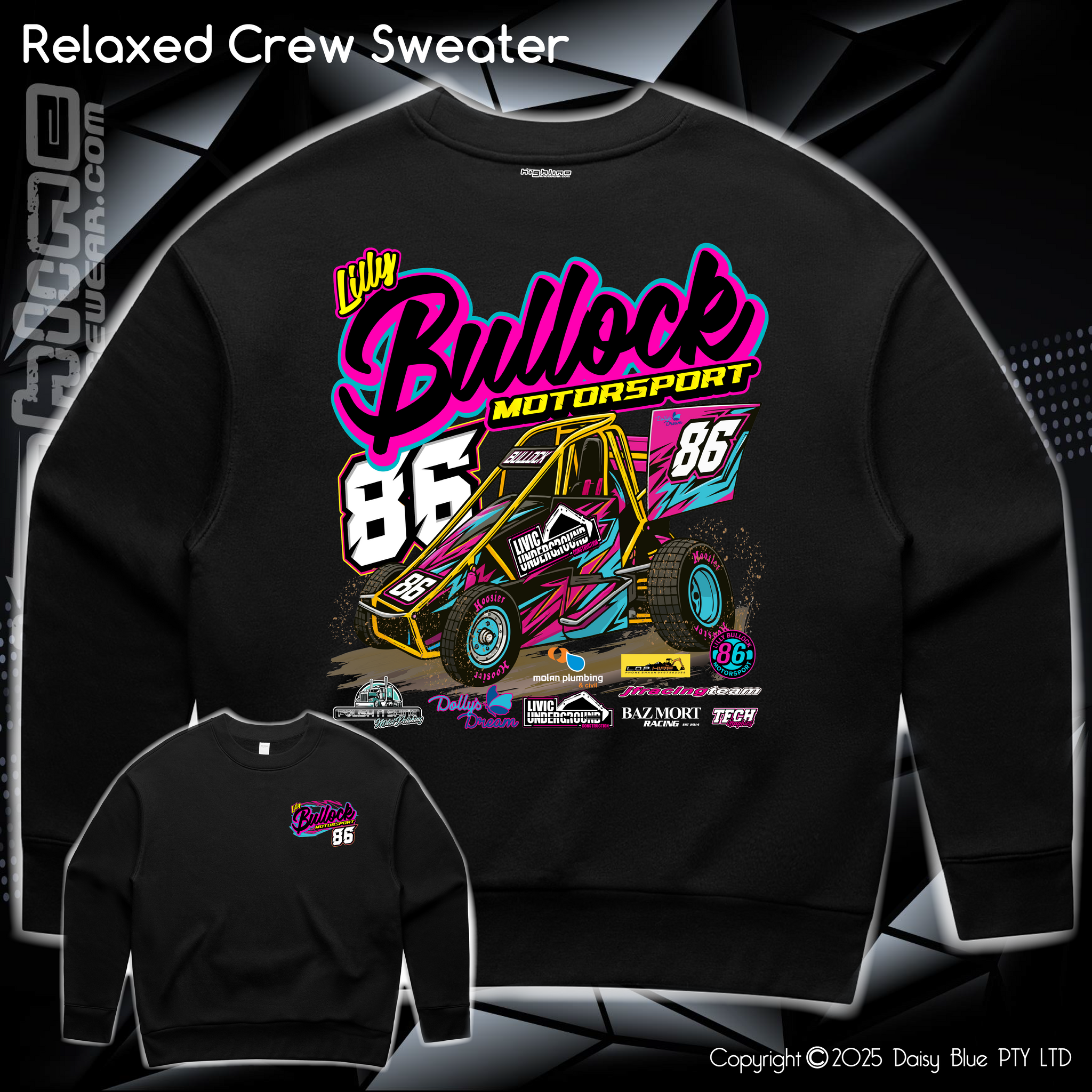 Branding:  Some garments may be branded with the Highline Racewear logo on and outer area of the garment.