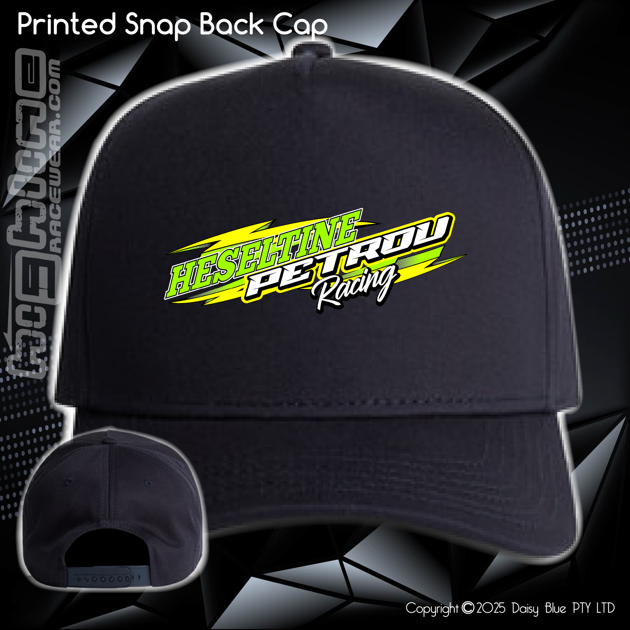 Construction:High profile - snapback cap, curved peak